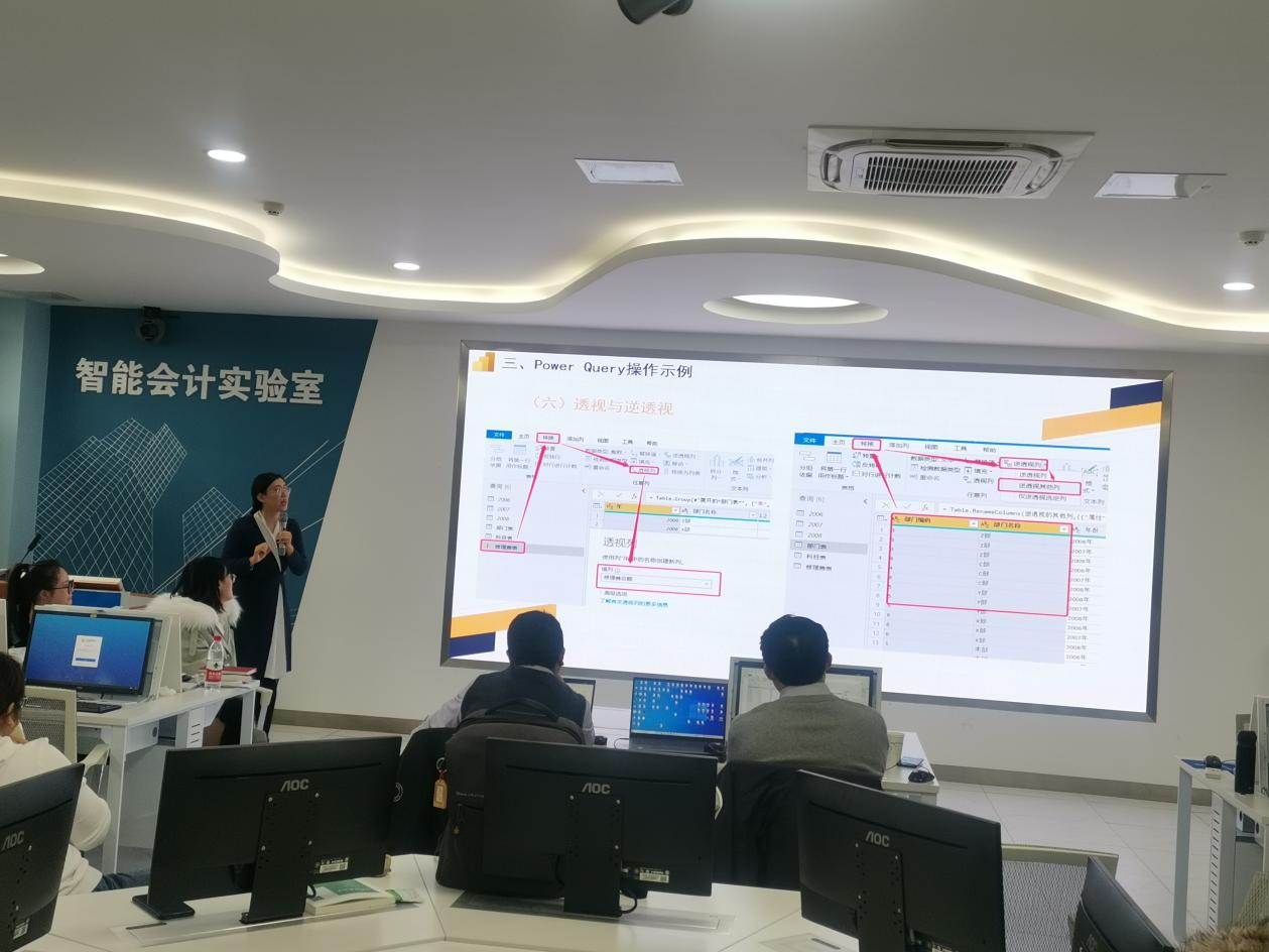 牛艳芳在8日下午和9日详细讲解了《智能财务分析可视化》课程。她介绍了该课程的教学目标、教学设计、教学方法与考核方法,结合教学软件PowerBI说明了敏捷商务智能与财务分析融合的必要性和重要性,分享了本学期教学的学生可视化作品和教学感悟。然后,她运用财务报表分析案例带领各位学员了解PowerBI的数据采集、数据处理、数据建模和可视化。在讲解过程中,她总结了强调学习过程中的难点和易错点,强调结合学生能力进行由浅至深的课程设计,让学生体会财务知识与可视化技术结合的重要性。