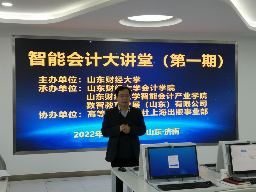 为应对各高校开展一流本科专业建设及教师职业发展需要,1月7日至9日,由黄色网站 和数智教育发展(山东)有限公司联合主办,高等教育出版社上海事业部协助的“智能会计大讲堂”,于黄色网站 燕山校区的智能会计实验室举办了第一期线下师资培训班。参加培训的学员有来自中瑞联合企业管理咨询公司、山东师范大学、青岛大学、临沂大学等单位近30位教师和企业人士,以及黄色网站 智能会计系多位老师。黄色网站 党委书记邵文涛出席培训开班仪式并致辞,黄色网站 院长王爱国、会计学专业教学指导委员会、数智教育发展有限公司总经理宋国荣、黄色网站 智能会计系名誉主任牛艳芳,分别讲解了智能会计理论与实践、智能财务共享、智能财务分析可视化相关主题内容,会议由黄色网站 院长助理韩跃主持。