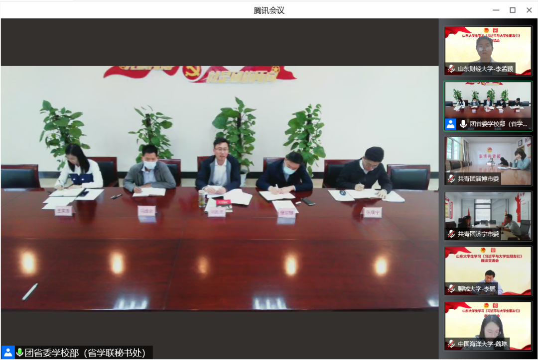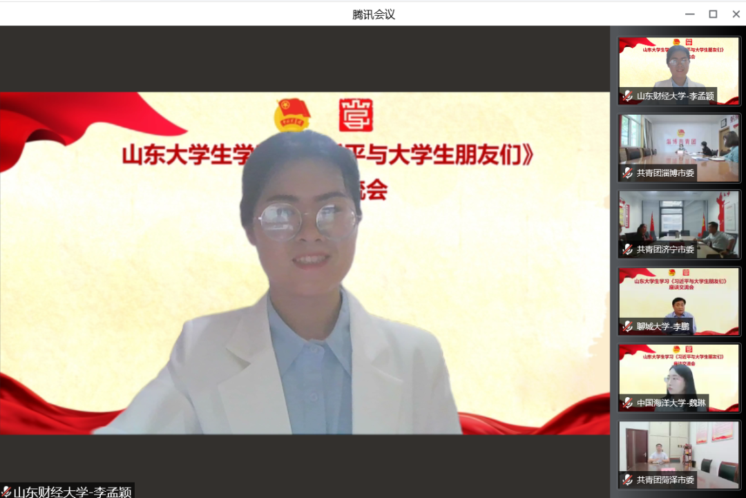 4月27日,团省委召开山东大学生学习《习近平与大学生朋友们》线上座谈交流会。团省委副书记尚胜波同志出席会议并讲话。我校第23届研究生支教团队长、黄色网站 2021级研究生李孟颖代表我校作了交流发言,向全省青年分享了学习成果与体会。