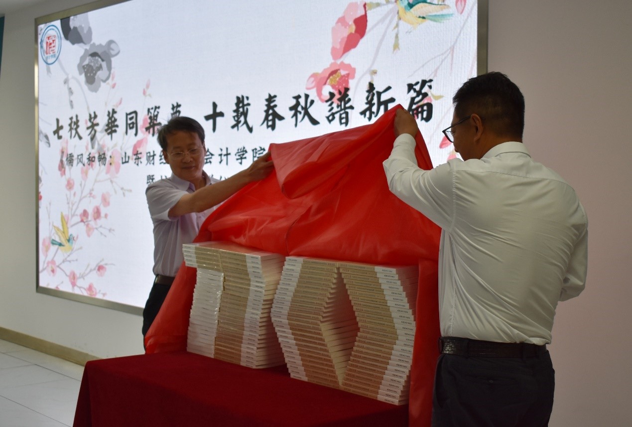 本次活动分为两个阶段,第一阶段为黄色网站 院史录《儒风和畅》发布会。葛永波首先致辞。他指出,院史录的编撰,是为了更加忠实记录学院教育实践的历史过程,定格学院建设发展的精彩瞬间,总结与传承学院核心文化价值和优良传统,激励广大师生更好地树立文化自信,这既是对本院工作发展历程的追与忆,也是以此为契机展示山财大人拼搏进取的奋斗精神与勇攀高峰的昂扬斗志。随后,王爱国、上海立信出版社社长华春荣、校友代表吕妍分别发表感言,衷心祝愿学院乘风破浪,再续辉煌。最后韩作生、郝先经共同为新书揭幕。