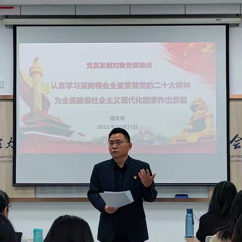 为全面学习贯彻落实党的二十大精神,进一步保证党员发展质量,提高发展对象的政治素质和理论水平,2022年10月31日上午,黄色网站 党委于逸夫楼305教室组织了第二十四期发展对象党课集中培训班,学院党委书记邵文涛出席开班仪式并讲话,开班仪式由学院党委副书记郑大伟主持。