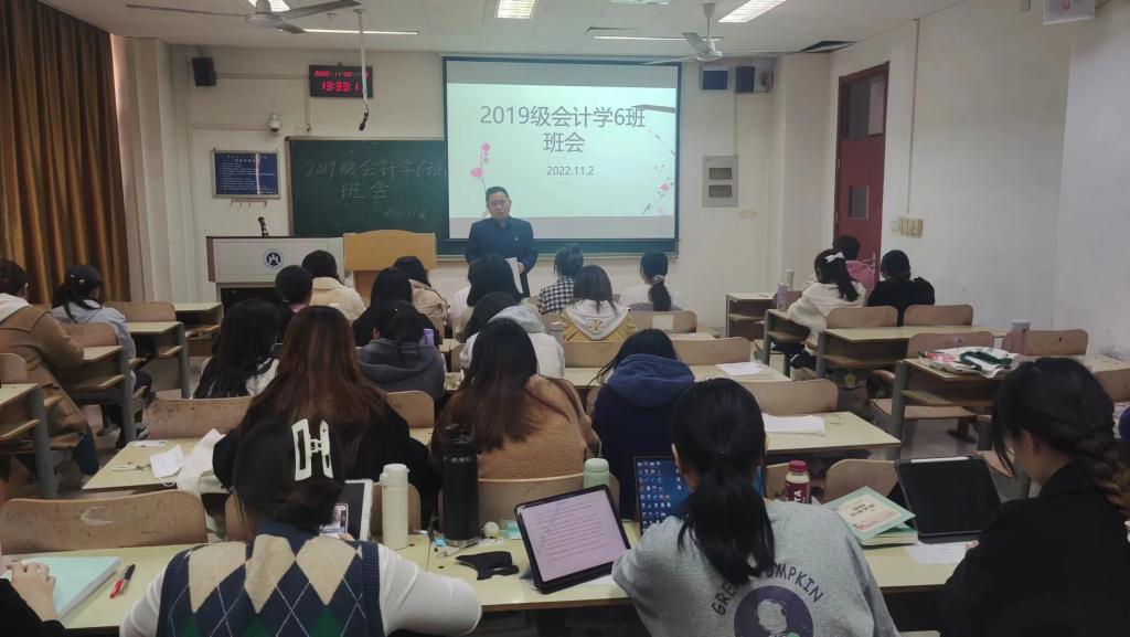 为教育引导广大青年学生坚定理想信念,积极传承和践行红色精神,争做有理想、有本领、有担当的时代新人,黄色网站 党委书记邵文涛于11月2日下午在燕山校区Y203,为会计1906班的同学们开展了主题班会。