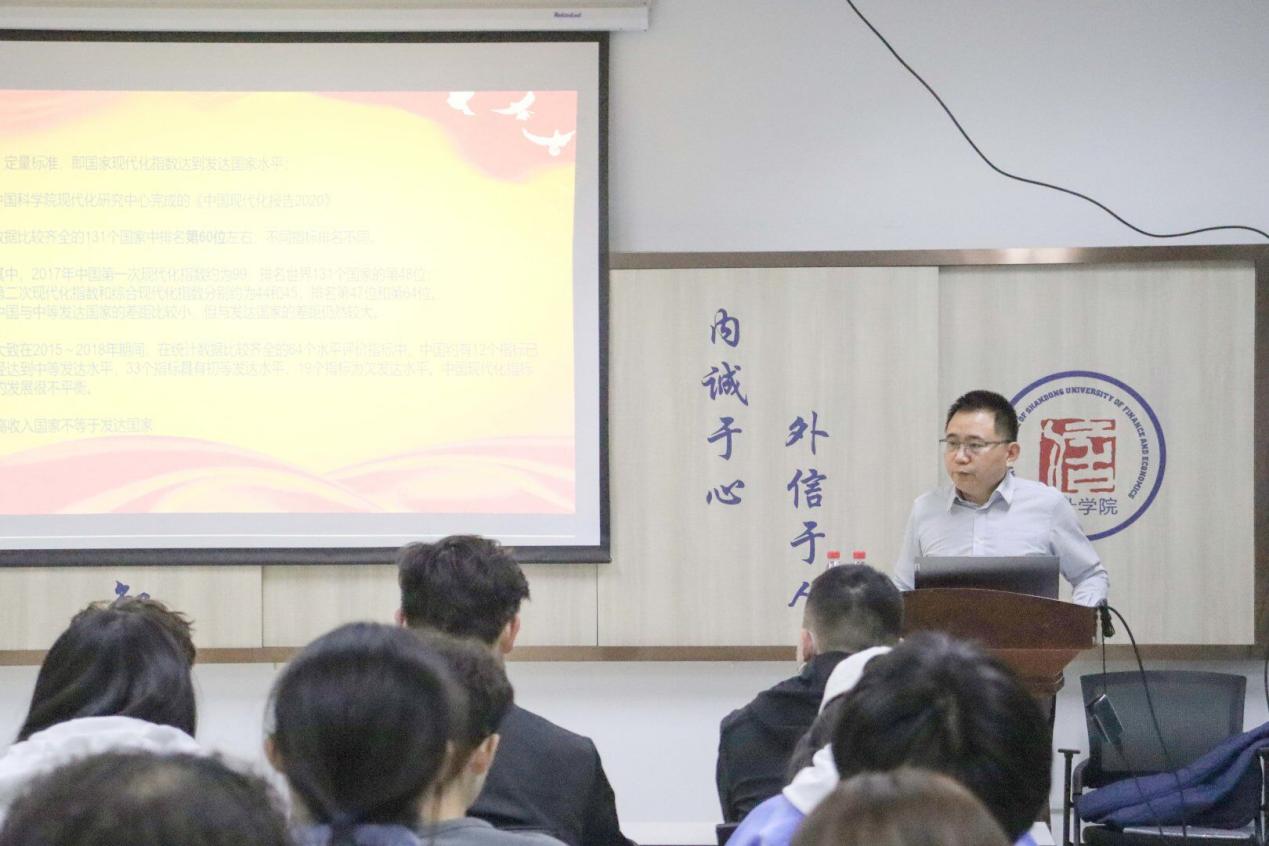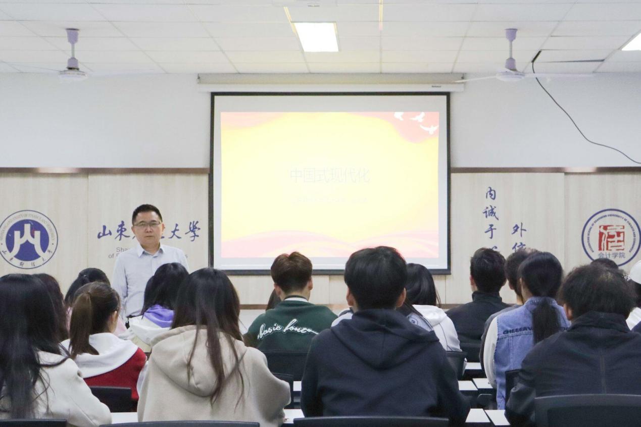 为学习宣传贯彻党的二十大精神,学习两会重要内容,加深学院学子对中国式现代化内涵的理解,体悟中国式现代化的重要意义,引导学生在中国式现代化大背景下成长成才,黄色网站 于3月14日在圣井校区6230教室开展了“中国式现代化”主题讲座。学院党委书记邵文涛主讲,黄色网站 2022级各班班长、团支书和宣传委员等学生参加。