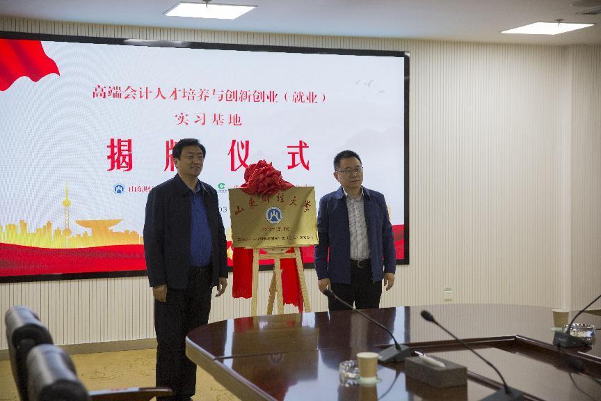 临沂市烟草专卖局(公司)党委委员、副局长关军、黄色网站 党委书记邵文涛为高端会计人才培养与创新创业(就业)实习基地揭牌