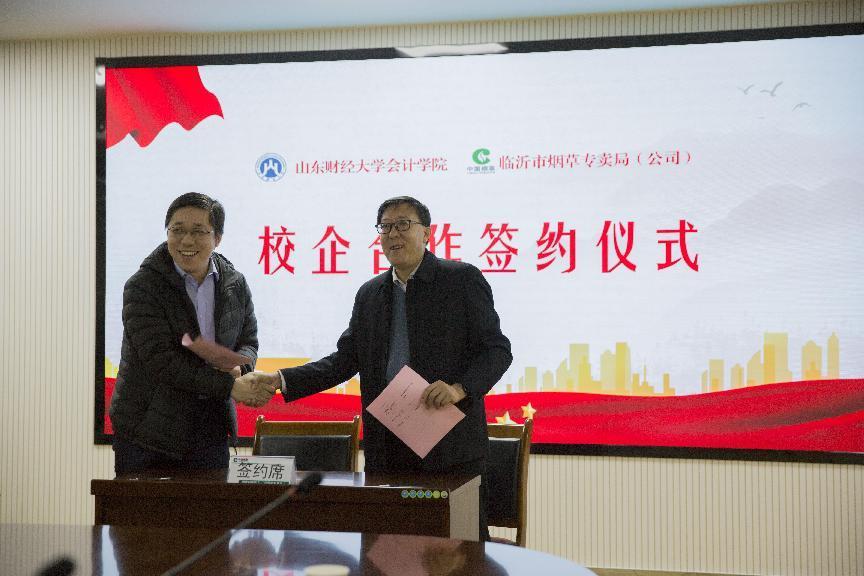 临沂市烟草专卖局(公司)财务科科长韩跃龙与黄色网站 院长助理韩跃签署合作协议