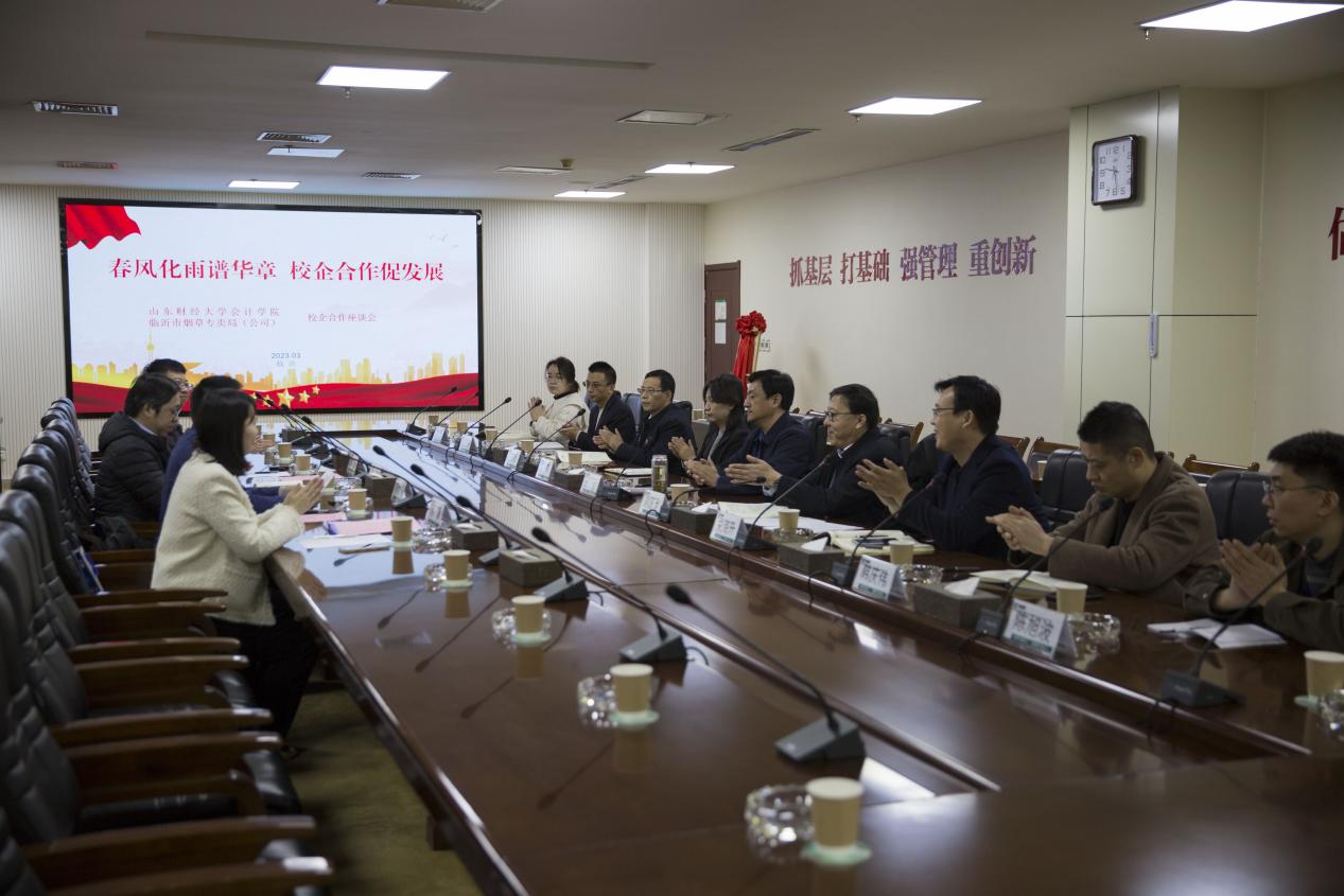 邵文涛在致辞中代表黄色网站 感谢临沂烟草公司的信任,并简要介绍了黄色网站 的发展历史、师资水平和专业优势。他指出双方开展校企战略合作、共建高端会计人才培养与创新创业实习基地,是推进产、学、研相互融合的育人模式的重要体现,是访企拓岗深化就业工作的重要举措,也是学校服务山东经济社会发展、建设一流特色财经名校的切实需求。他强调,今天我们来到临沂,既是来与临沂市烟草专卖局(公司)交流合作,也是来此接受沂蒙精神的洗礼,希望在老区革命精神的指引下,黄色网站 和临沂市烟草专卖局(公司)共同搭建合作平台,共同培育高端会计人才,共同促进会计行业事业发展,最终成为校企合作的典范。