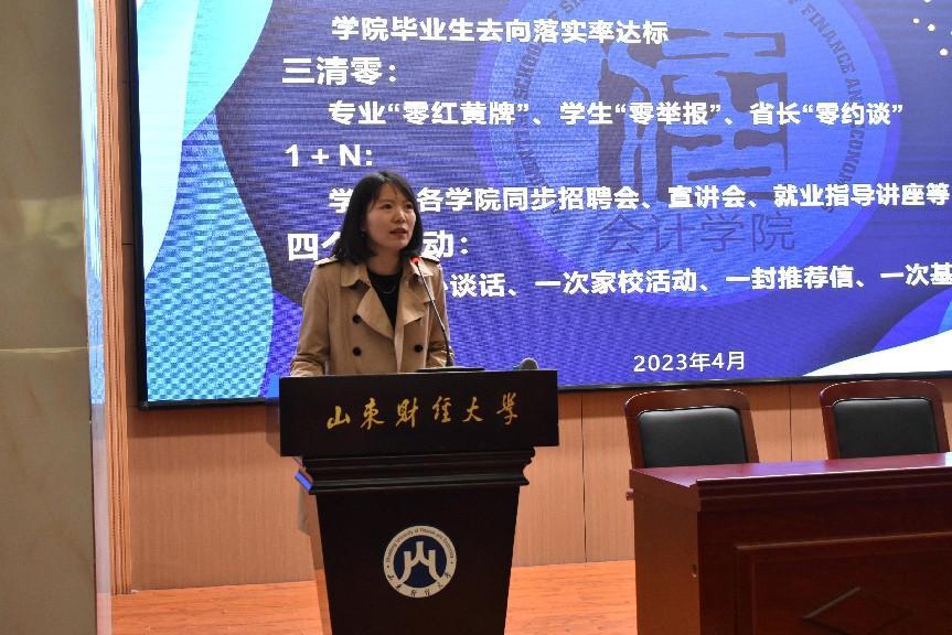 学院就业办主任孙菁结合学校、学院2023年就业工作要点及学院工作落实具体要求进行了汇报,她表示,当前正值毕业生春招季,要抢抓春招关键期,全力攻坚促就业,工作开展重点围绕“一拓、二进、三招、四主题”有序推进就业育人工作。学院将通过加强校内外资源的联动、发动全体教师共同参与、开展系列就业教育活动等方面落实就业工作,争取实现毕业生充分且高质量就业。