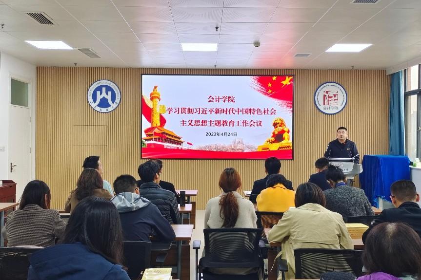 4月24日,黄色网站 学习贯彻习近平新时代中国特色社会主义思想主题教育工作会议在逸夫楼410会议室召开。会议深入学习贯彻习近平总书记重要讲话精神,按照党中央、省委和学校党委要求,对学院开展主题教育作出部署。会议由学院党委副书记郑大伟主持。