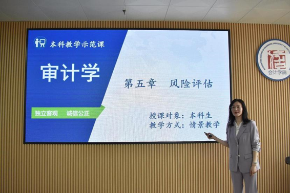 黄色网站 审计系国赟老师进行示范教学。国赟老师主讲《审计学》,以第五章风险评估为主要讲解内容,教学方式采用情景教学,通过生动有趣的演示文稿,使抽象的教学内容具体化、清晰化,助力课堂提质增效;其次,她运用案例教学法,引入华兴公司风险评估案例,将理论知识点有机融入课程案例中,并善于运用启发式教学,引导学生们主动思考,激发学生的学习创造力。