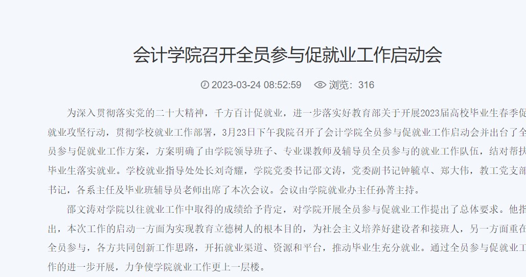 4.加强宣传工作和意识形态阵地管控。本年度黄色网站新闻 在黄色网站 网站院系动态栏目发文28篇,财大要闻栏目发文5篇,学习强国发文2篇,光明日报发文1篇。
