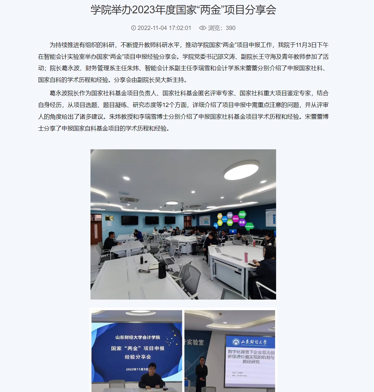5.积极推进研究生导师指导能力提升计划,成果丰硕。立项1项校级研究生教育教学改革项目,1项推荐参评省级研究生教育教学改革项目,立项3项校级研究生教育主题案例,1部研究生教材(《MPAcc案例教学与应用》)获评省级一流教材;《中国情境下专精特新企业自主创新之路》获得教育部主题案例立项;导师发挥示范表率作用,1人获评山东省优秀研究生导师,1人获评校级优秀研究生导师,1支导师团队获评省级研究生优秀导学团队。