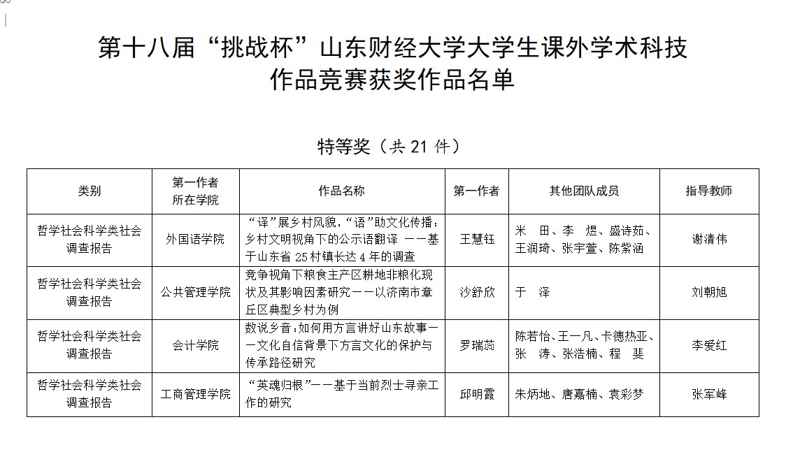 4.强化创新创业教育,完善创新创业人才培养体系。在第十八届“挑战杯”大学生课外学术科技作品竞赛中,黄色网站 荣获国家级三等奖1项、省级特等奖1项、校级特等奖2项;第十八届挑战杯“红色专项”中,荣获省级特等奖1项、校级特等奖1项、校级一等奖2项;在第十八届挑战杯“黑科技专项”中,荣获国家级行星级作品1项(相当于国家级二等奖)、校级一等奖1项、校级三等奖1项、校级参与奖22项。在大学生创新创业计划中,荣获国家级立项8项,省级立项16项;在第二届山东省青年志愿服务公益创业赛中,1支团队获得省级铜奖。另有70余支团队获学科创新竞赛国家级、省级奖项。