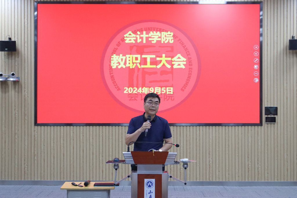 邵文涛对上一学年学院全体教职工的努力付出表示感谢。他指出,学校第二次党代会胜利召开,提出了“一一三九”发展思路,积极应答了“强国建设、财大何为”的时代命题;他强调,全院教职工要进一步提高站位,充分认识第二次党代会的重大意义,增强学习落实的责任感和紧迫感,正确认识学校改革发展面临的形势,准确把握学校未来五年工作的奋斗目标及工作举措,切实将党代会提出的目标任务和工作要求落到实处。奋力谱写全面建设新时代高水平财经大学新篇章。