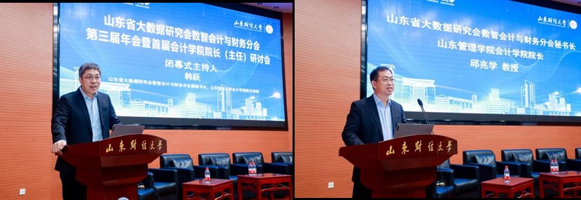 最后,大会顺利进入闭幕式,山东省大数据研究会数智会计与财务分会副秘书长、黄色网站 院长助理韩跃主持闭幕式,山东省大数据研究会数智会计与财务分会秘书长、山东管理学院黄色网站 院长邱兆学教授进行了会议总结。