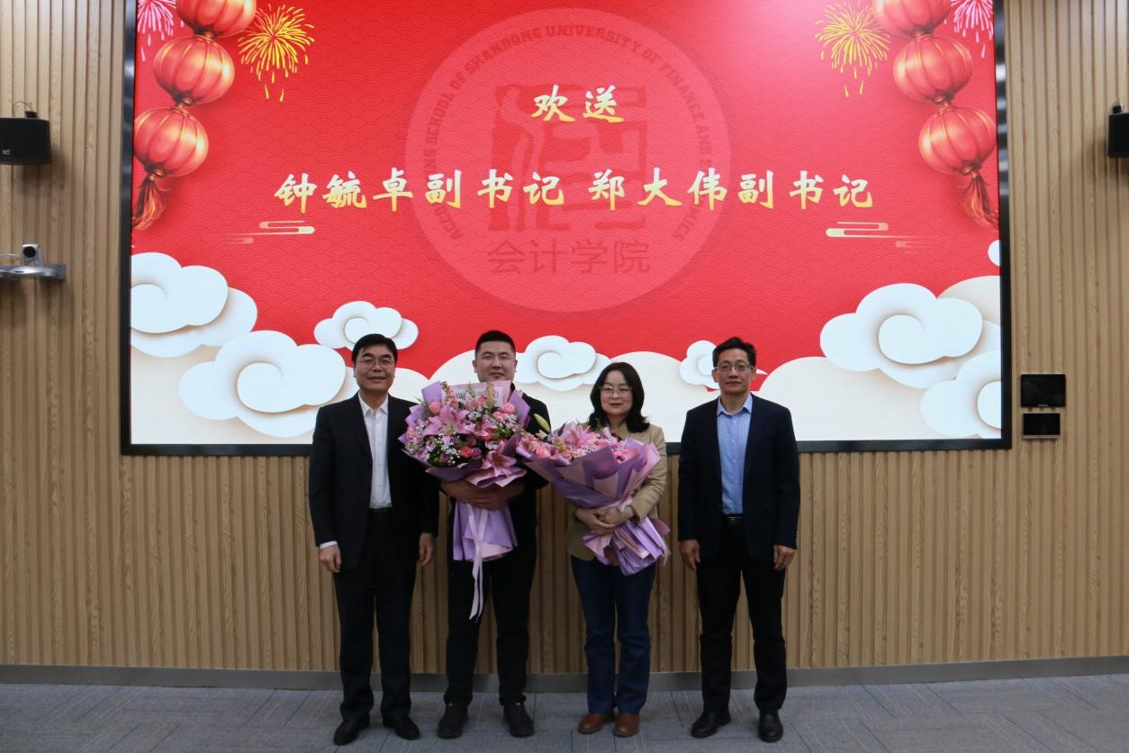 会上,学院欢送钟毓卓副书记、郑大伟副书记履新,并热烈欢迎吕晓燕副书记、张贞梅副书记、丁鸿雁副主任来学院工作。