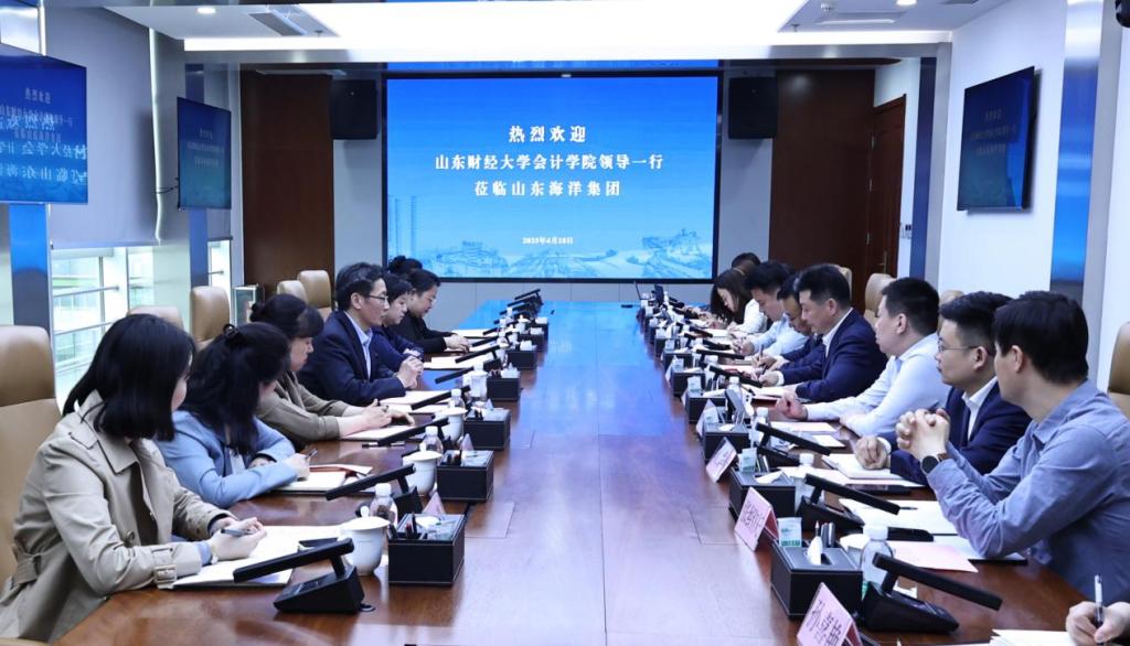 学院党委书记任海伦代表学院对集团的热情接待表示衷心感谢,并介绍了学院的历史沿革、学科建设、师资力量以及近年来在人才培养、科学研究等方面取得的显著成就,着重推介了学院在红色会计、智能会计领域的发展。他指出,希望以此次活动为契机,与山东海洋集团在实习就业、科研合作、社会培训等方面开展多方位合作。双方围绕合作议题展开了热烈讨论,就产学合作协同育人达成初步合作意向。