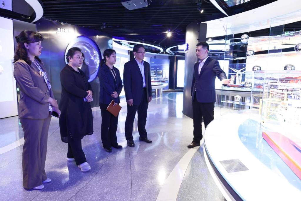 活动伊始,学院一行参观了山东海洋集团的智慧展厅,蓝鲲海工董事长张磊展示了企业在海洋工程装备、现代海洋产业等领域的创新发展成果。展厅内,先进的科技展示手段生动呈现了集团的发展历程、业务布局、科技创新以及未来发展战略,让来访老师对集团有了更深入的了解。