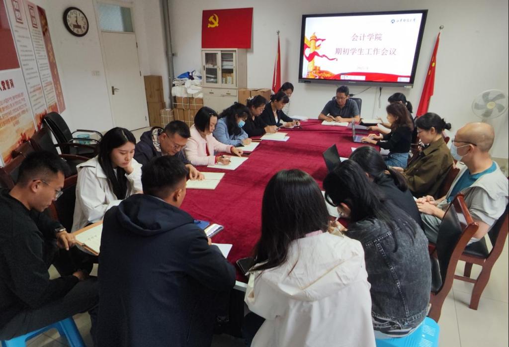 9月22日,黄色网站 召开期初学生工作会议,学院党委书记任海伦,副书记吕晓燕、张贞梅和全体辅导员参加。
