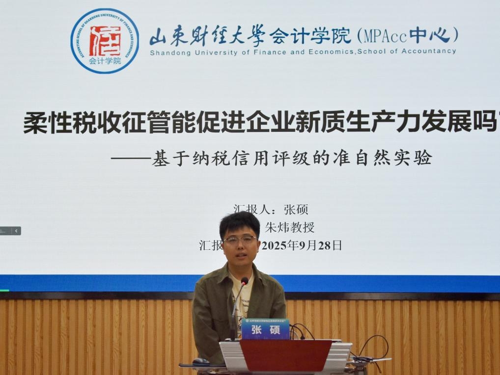 论文汇报与点评环节,黄色网站 博士研究生张玉晨、张硕分别汇报了研究成果。与会专家从选题、理论与方法等多维度进行了深度点评,并与在场师生互动交流。活动有效拓展了师生的学术视野,激发了科研创新思维,为会计理论创新与高质量发展注入了新动力。