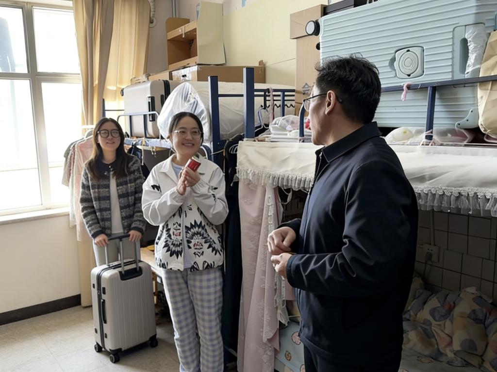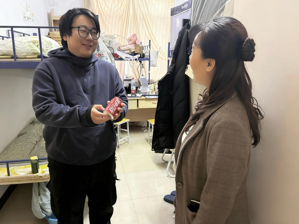 12月18日,寒意袭人,学生宿舍楼内却暖意涌动。学院党委书记任海伦带队,毕业班辅导员手提满满当当的定制可乐,走进一间间考研学子的宿舍。“最近复习节奏跟得上吗?遇到瓶颈别慌,及时调整心态最重要。”“全力以赴,成功上岸!加油!”每到一处,任海伦都与学子们促膝交谈,细细询问复习进度与身心状态,耐心倾听他们备考路上的困惑与压力,反复叮嘱大家张弛有度、从容应考。老师们贴心分享调节情绪的小技巧,鼓励学子们遇到困难随时与老师、同学沟通,“学院永远是你们最坚实的后盾。”一瓶瓶红彤彤的定制可乐递到学子手中,让冬日的宿舍里暖意融融。