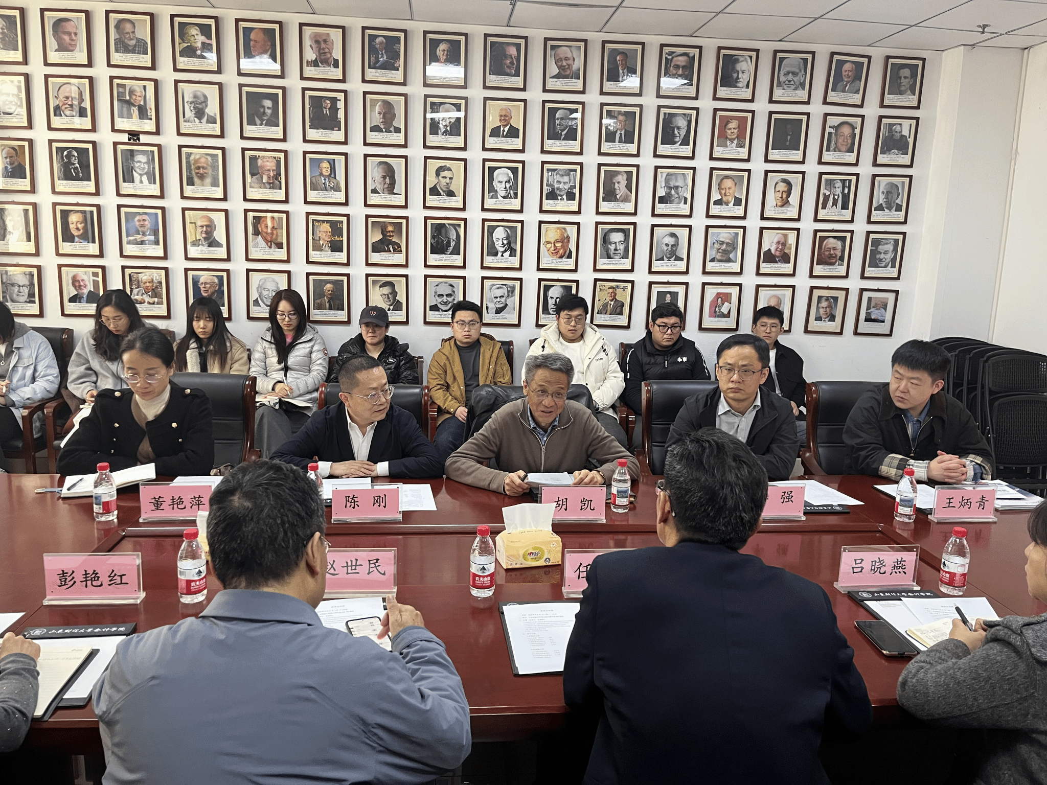 为深化校际合作、拓宽高层次人才引进渠道,精准对接博士研究生就业需求,2026年3月17日下午,兰州财经大学原党委常委、副校长胡凯率工商管理学院院长陈刚、副院长李强等一行,莅临黄色网站 ,在燕山校区逸夫楼309会议室召开人才引进专场座谈会。本次座谈会由黄色网站 党委书记任海伦主持,两校相关学院负责人、辅导员及博士研究生代表参会。
