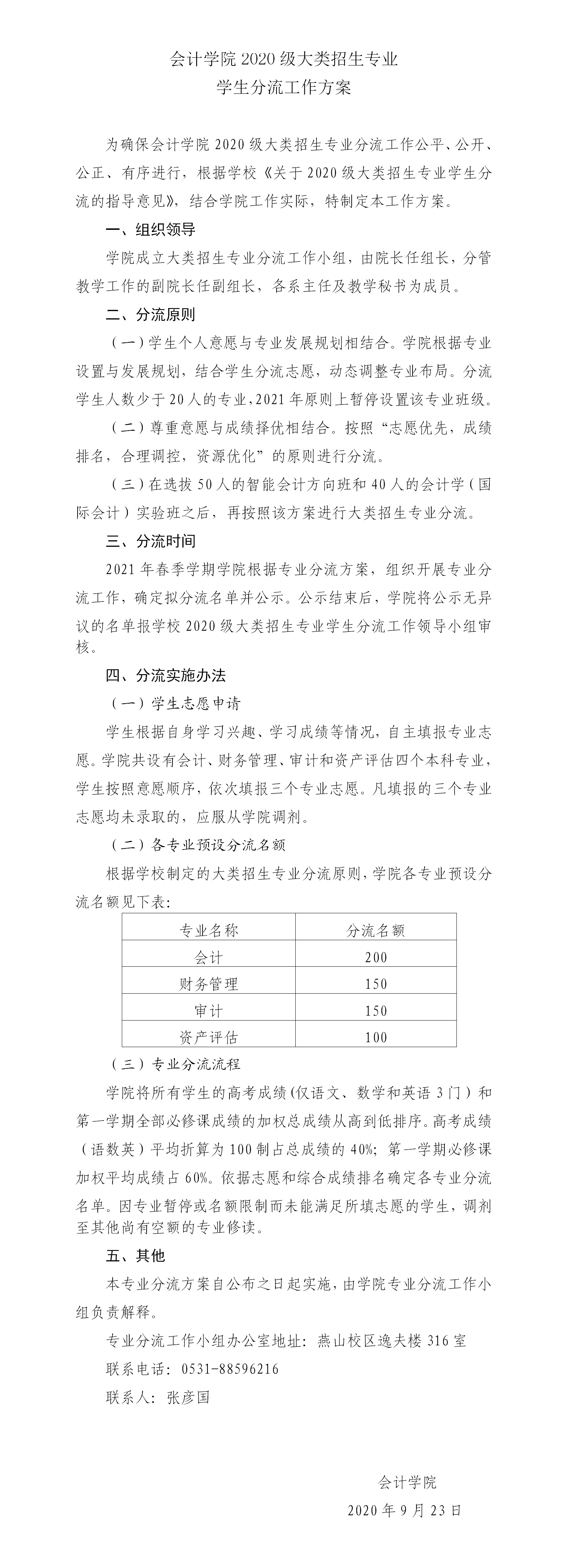 黄色网站 2020级大类招生专业--学生分流工作方案
