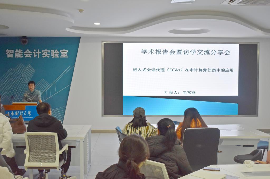 11月30日晚,黄色网站 尚兆燕副教授在燕山校区逸夫楼Y320作了题为“嵌入式会话代理(ECAs)在审计舞弊侦察中的应用”的学术报告。报告由黄色网站 副院长孙文刚主持,黄色网站 2021级部分硕士生聆听了报告。