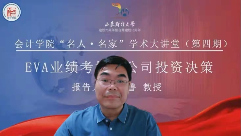 6月7日,黄色网站 第四期“名人·名家”学术大讲堂顺利开讲,上海财经大学黄色网站 院长靳庆鲁教授作题为“EVA业绩考核与公司投资决策”的学术讲座。本次活动由黄色网站 院长葛永波教授主持,学院全体教师和研究生参加了本次讲座。