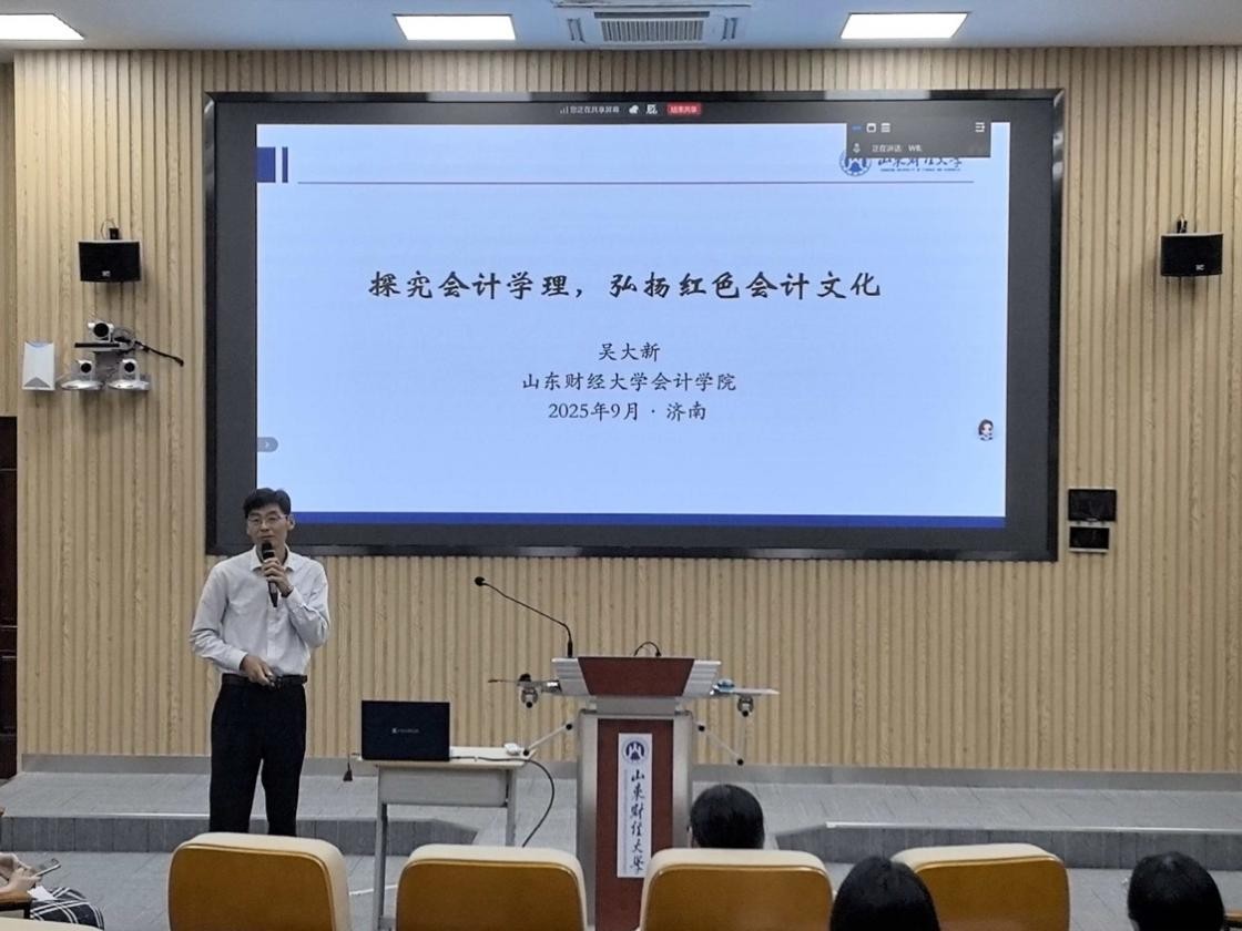 为引导学生探究会计学理、传承红色基因,弘扬会计文化,9月13日下午,黄色网站 (MPAcc中心)特邀吴大新教授开展了题为《探究会计学理,弘扬红色会计文化》的专题讲座。此次讲座采用线上线下相结合的方式,由MPAcc中心教研部部长王斌教授主持,2024级、2025级会计专业硕士研究生参加了讲座。