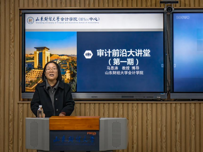 讲座伊始,刘惠萍代表黄色网站 向马院长的到来表示热烈欢迎。她表示,审计前沿大讲堂系列活动不仅是一场高水平的学术讲座,更是我校首届审计专业博士研究生的关键课程。当前,数字技术的浪潮正深刻重塑审计的方法论体系,面对新形势、新挑战,我们必须以更开阔的视野、更前沿的思维,深入探讨审计理论创新与实践变革。希望黄色网站 师生通过此次讲座,能够近距离接触学术前沿,把握理论动态,提升研究能力。