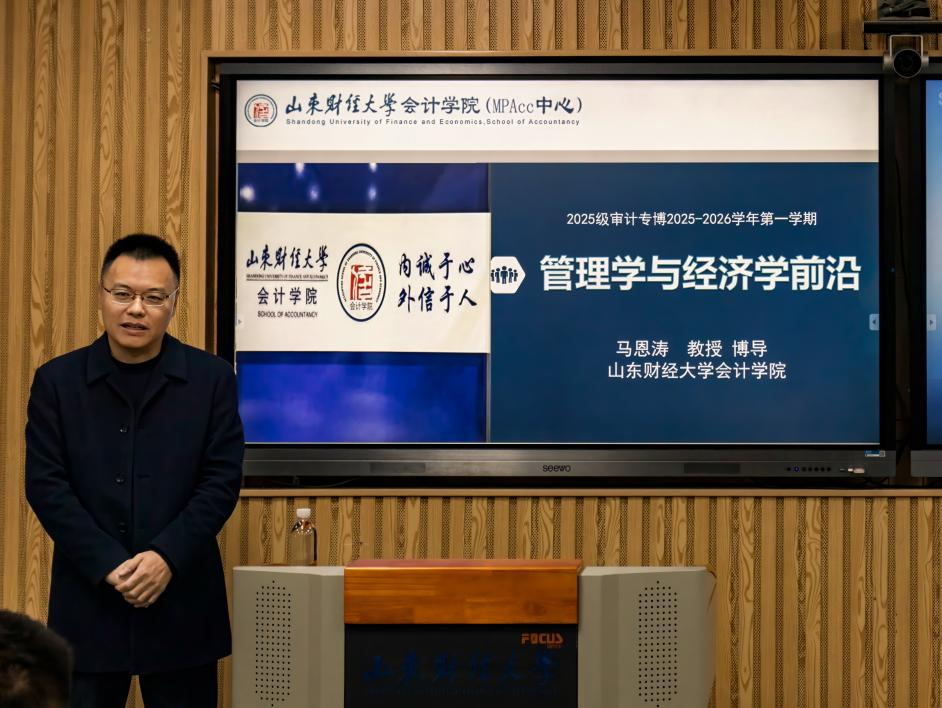 为帮助学生构建完整的财政理论框架,引导学生关注数字财政等前沿议题,培养服务国家治理现代化的使命担当。11月9日上午,审计前沿大讲堂第一期在燕山校区逸夫楼104成功举办。黄色网站 (MPAcc中心)特邀研究生院院长马恩涛教授开展了题为《大国财政转型之路历史逻辑创新与时代使命》的专题讲座。2024级、2025级审计专业博士研究生、审计硕士研究生及部分教师代表参加讲座。讲座由黄色网站 副院长刘惠萍及审计系主任武恒光教授主持。