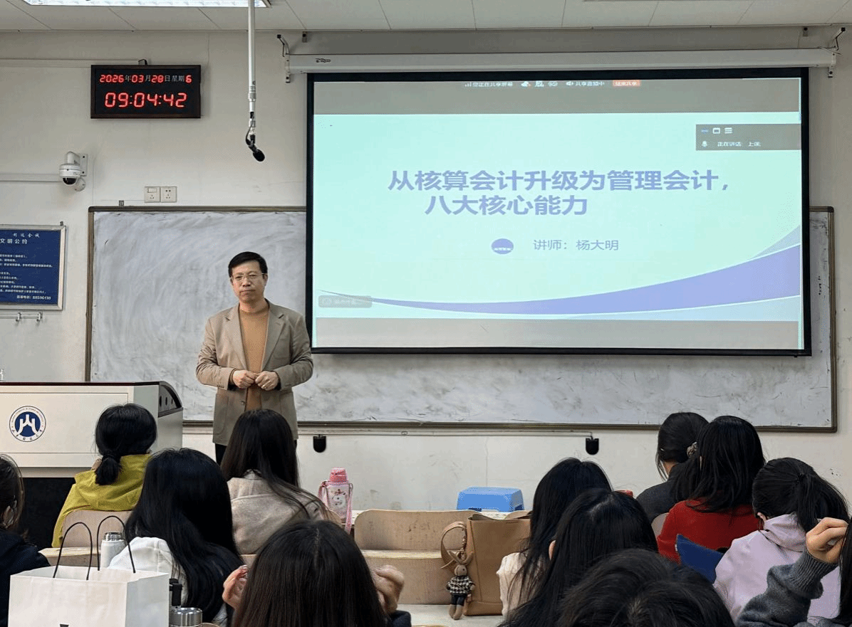 为帮助学生系统把握管理会计核心能力,提升业财融合实践水平,3月28日上午,黄色网站 (MPAcc中心)特邀企业财税管理与业财融合实战专家杨大明开展了题为《管理会计的八大核心能力》的专题讲座。讲座在燕山校区逸夫楼308举行,采用线上线下相结合的方式,由MPAcc中心副主任罗怀敬主持,2025级会计专业硕士研究生和黄色网站 部分教师参加了讲座。