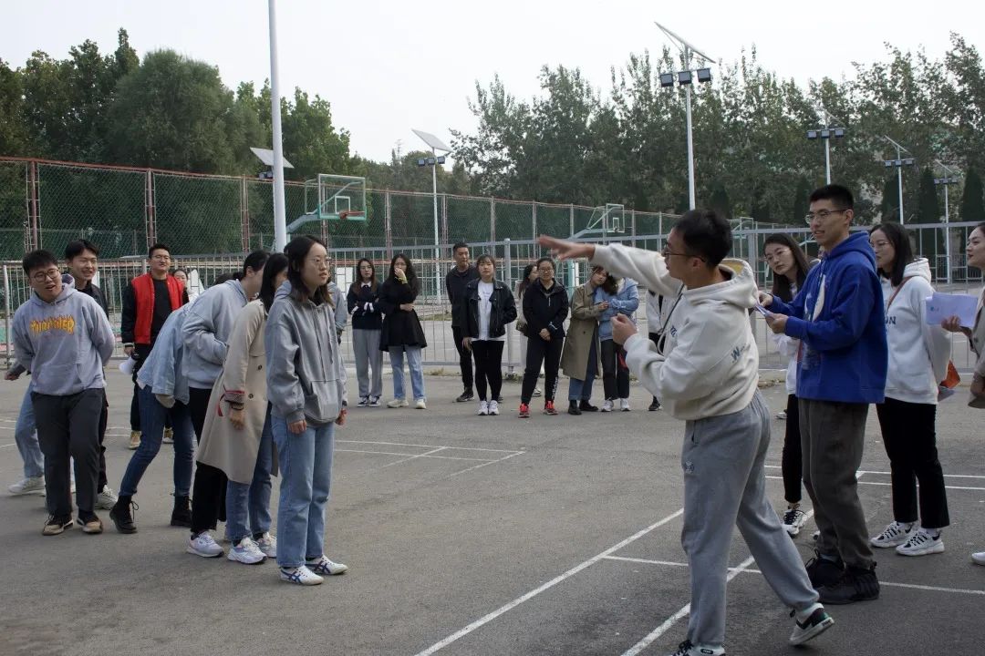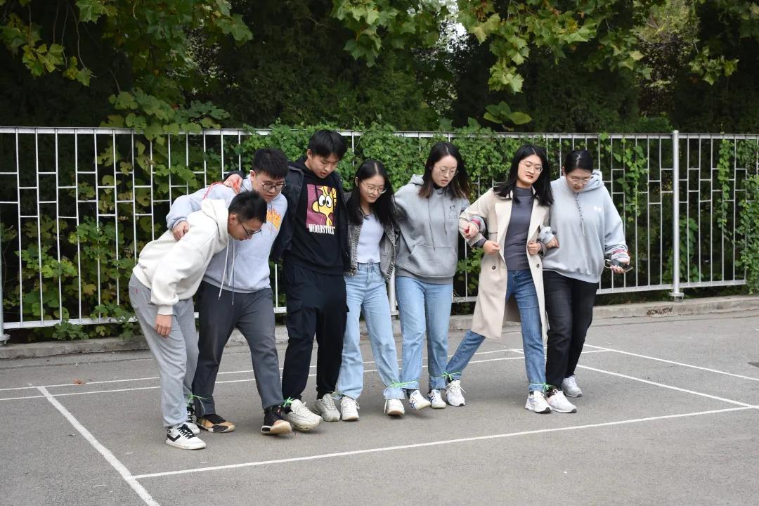 最后进行的是有趣的团队游戏“八人九足并排跑”,游戏规则是组内成员站成一排,相邻同学的腿绑在一起,站在起跑线上,做好准备,待发令员发令,即开始比赛,当到达终点时,裁判员吹哨,用时最短的队伍胜出。有些组因默契度没有发挥到极致,导致走不动,可他们不气馁,调整好状态后再次喊起了口号,整齐地迈向终点。除了令人捧腹的画面,更多的是队友间互相照顾、并肩作战的温暖瞬间。在这一个个的团建游戏中,同学彼此之间的默契度也在悄然上升。