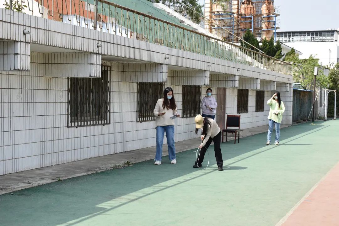 闯关关卡包括答题通关,参赛队员需要在规定时间内答对三道题目,题目内容涵盖党史、常识、艺术等多个领域,考验了同学们的知识领域。猜牌游戏同样是考验脑力的游戏,在规定时间内记下6张扑克牌的顺序和花色,在另一副打乱的扑克牌中找出这6张牌并按顺序摆出即为通关。除了脑力游戏还有趣味运动关卡,“四人五足”要求相邻同学的腿绑在一起,共同前往指定地点拿取玻璃球并返回,这是一个团队协作游戏,考验成员间的默契和配合,同学们团结一心,喊着口号整齐划一地迈向终点。滚铁环、接力跳绳、羽毛球、“双龙戏珠”更是把同学们带回童年,在娱乐放松的同时,培养学生的耐心、专心、齐心的良好品质,享受比赛和团队合作带来的激情与快乐。另外,全局任务要求队伍要在校园内找到四种不同种类的花,并按照规定手势自拍,在欣赏校园美景的同时,也帮同学们留下奋斗、协作、拼搏的精彩瞬间。