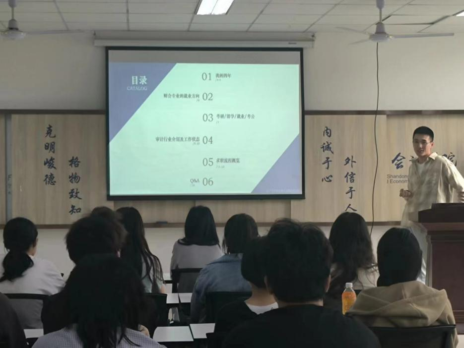 为帮助同学们更好地应对就业挑战,获取就业的宝贵经验和实用技巧,黄色网站 成功举办就业育人主题教育活动——“财会职场揭秘,学长心传分享”校友就业经验分享会。学院特邀2019级校友娄智淳,以自身的大学经历与实习经历为例向大家传授自身宝贵经验,为学弟学妹带来了精彩的财会职场经验分享。 活动由23级辅导员王文伟主持。