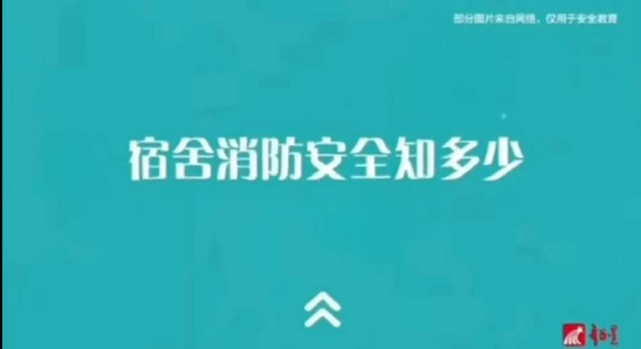 宿宣消防,益见真章。学院学生会每周定期为同学们推送宿舍安全知识视频,并组织同学们以宿舍为单位进行观看。通过这一举措,增进了同学们对宿舍安全知识的了解,有利于保障同学们的自身安全。