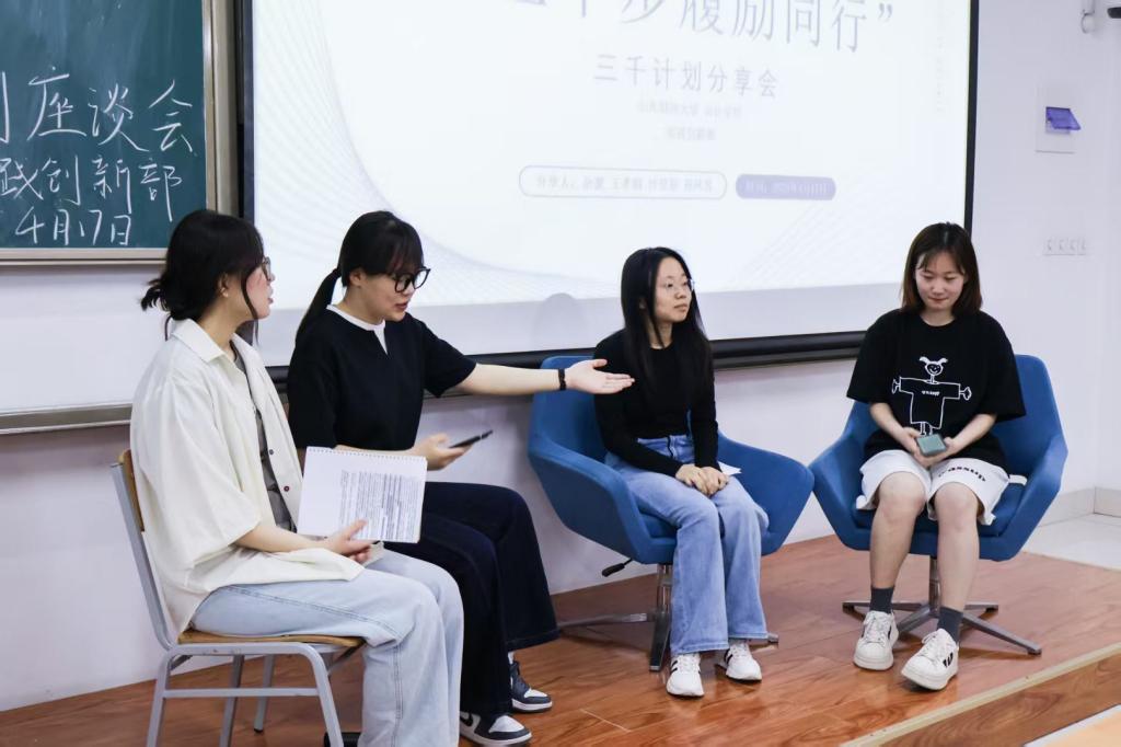 在互动环节,同学们积极提问请教,展现了对“三千计划”的热情,学姐们也耐心解答,为同学们提出进一步的建议。