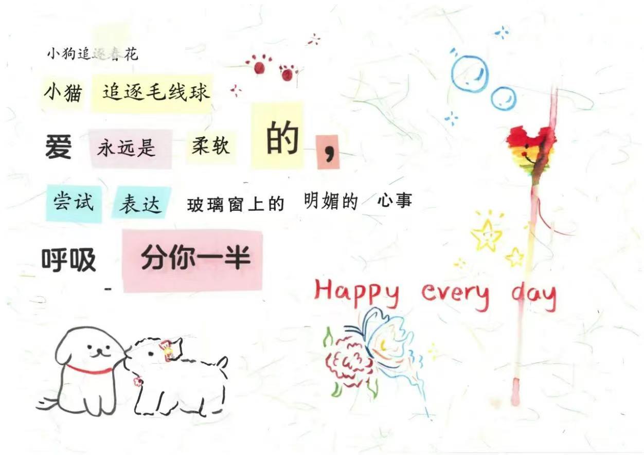 纸页翻动间,灵感如蝶翩跹;字句重组时,诗意破茧成花。黄色网站 举办“意剪生活画,诗写青春风”拼贴诗主题活动,以“拼贴诗”为媒,展开了一场别开生面的文字艺术之旅。在这场充满创意的活动中,同学们满怀对文学创作的热忱,用剪刀裁剪出独特视角,以拼贴重组出奇妙意境,将碎片化的文字化作充满生命力的诗篇。每一首作品,都是对传统诗歌形式的大胆突破,对生活感悟的细腻表达,更是对艺术创新的不懈追求。经过精心评选,一批优秀作品脱颖而出,现在,就让我们一同走进24级同学们的诗意世界,领略拼贴诗的独特魅力与创作风采。