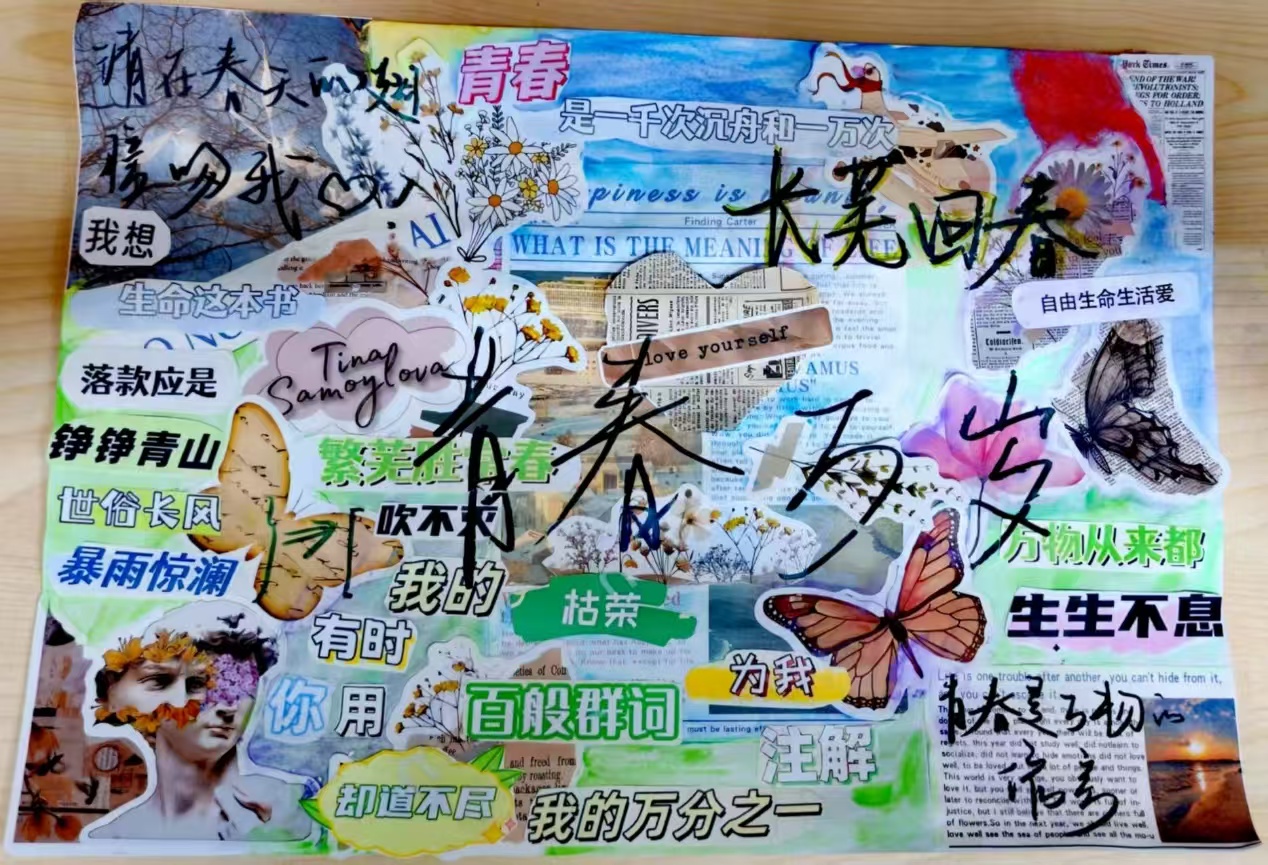 这幅拼贴诗是以青春、春天与生命为灵感交织而成的绘卷。