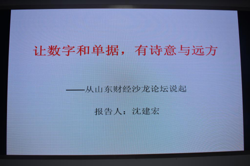 2019年10月19日下午,沈建宏先生应黄色网站 邀请,在燕山校区逸夫楼Y320做题为《让数字和单据,有诗意与远方—从山东财经沙龙论坛说起》的主题报告。讲座由MPAcc中心主任、黄色网站 副院长朱德胜主持,黄色网站 2018级、2019级会计专硕聆听了讲座。沈建宏是山东省青年作家协会理事,大众报业集团记者、编辑,也是山东大型读书活动主讲人以及山东第一届“明湖论道”财经沙龙活动策划人。