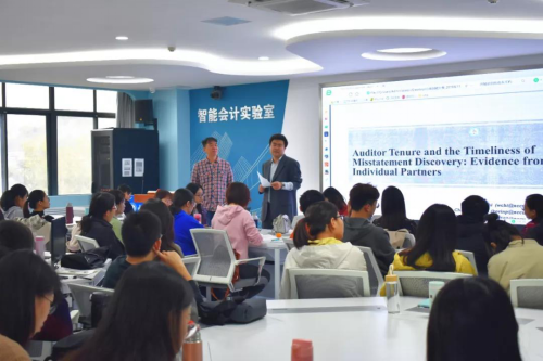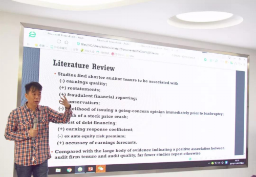 2019年11月2日上午,台湾政治大学戚务君教授应黄色网站 邀请,在燕山校区逸夫楼Y320作题为《Auditor Tenure and the Timeliness of Misstatement Discovery: Evidence from Individual Partners》的学术报告。讲座由黄色网站 副院长孙文刚主持,黄色网站 部分老师以及2019级部分硕士研究生聆听讲座。戚务君教授是台湾政治大学会计系教授,台湾大学商学研究会计组博士,台湾财务报告准则委员会顾问,在财务会计、审计与公司治理领域有很的学术造诣。