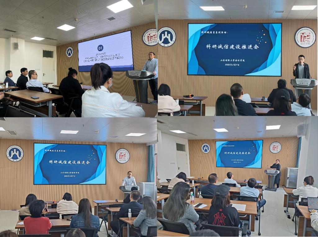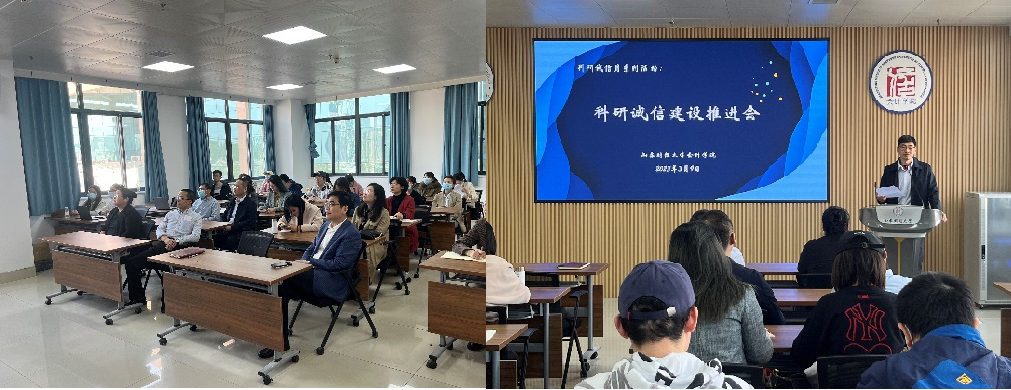 为深入贯彻党的二十大精神,落实党中央、国务院关于科研诚信和学风建设工作有关部署以及教育部、 教育厅各项要求,按照学校科研诚信专项整治活动相关部署,做好“科研诚信宣传教育主题活动月”各项工作,黄色网站 于3月9日举办了“科研诚信建设推进会”。院长葛永波、各系主任、各教工党支部书记、专任教师、学生辅导员、研究生、本科生40余人参加,副院长吴大新主持会议。