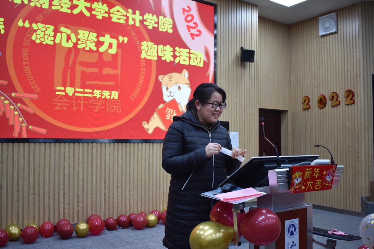 2022年1月3日,黄色网站 迎新春“凝心聚力”趣味活动在逸夫楼温馨开幕。院长王爱国、党委书记邵文涛、MPACC中心主任兼副院长朱德胜等班子成员出席,学院全体教职工参加。