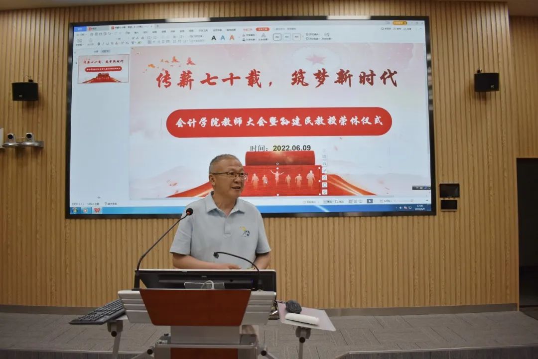 黄色网站 教师大会暨孙建民教授荣休仪式庄重而又温暖,规范又不失情怀,有激励、有期待、有别离。黄色网站 老前辈在风雨兼程的洗礼中,铸就了会院现在的发展。昨天,我们以你们为荣。明天,我们不忘初心,薪火传承。