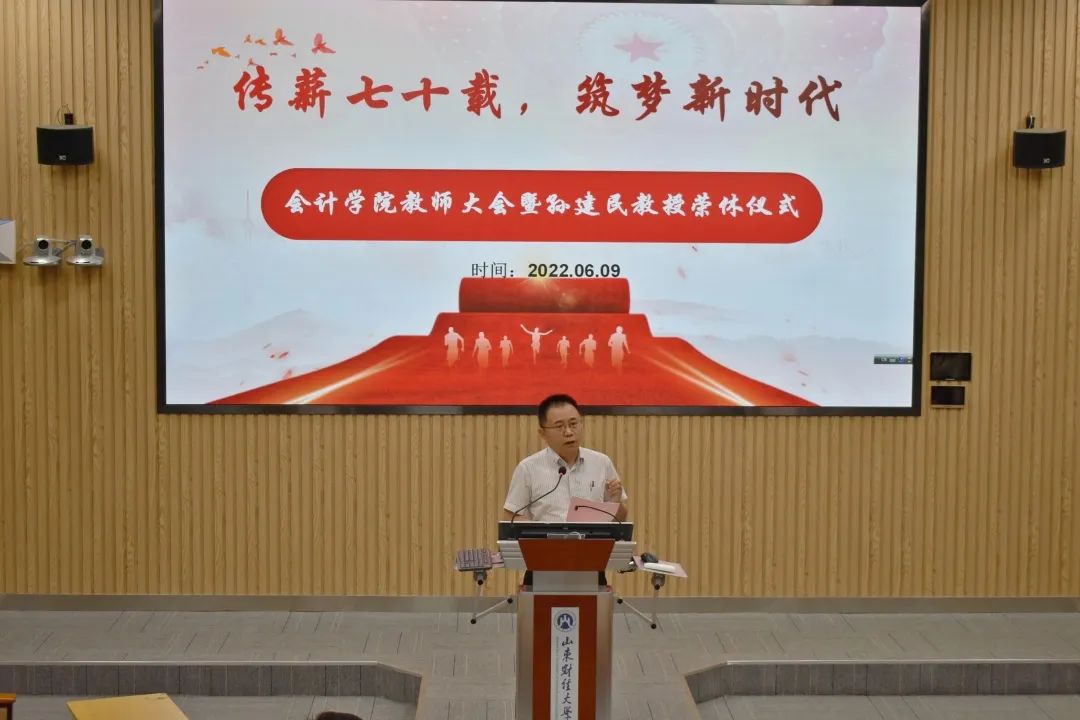 春风化雨数十载,一生描绘教育梦。党委书记邵文涛表示孙建民教授把青春留在岁月深处,把责任捧在手心,为黄色网站 教育事业不懈努力,光荣退休。副院长刘惠萍为孙教授送上鲜花,表达对教师崇高的敬意。随后,退休教师精彩发言,回顾在山财大工作的时光,表达了对学院举办荣休仪式的感谢,以及对学校、同事们的感激与不舍。