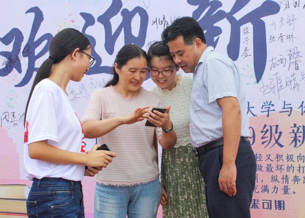 15日上午10时许,黄色网站 党委书记王邵军,党委副书记车滨、赵友春,纪委书记姜波,副校长张书学等校领导以及各职能部门负责人来到学院迎新展位前,在详细听取学院的迎新工作进展及新生报到情况后,王邵军对学院迎新成果表示认可并在迎新现场签名留念。王邵军对前来报到的新生与家长们表示欢迎,与学院19级少数民族学生亲切交谈,仔细询问了她们的生活近况,希望同学们珍惜美好时光,砥砺品德,刻苦学习,全面发展,掌握真才实学,努力成为建设伟大祖国、建设美丽家乡的有用之才、栋梁之材。同时,他对现场工作人员及学生志愿者致以慰问,为会院迎新工作的顺利完成注入了极大的精神力量。