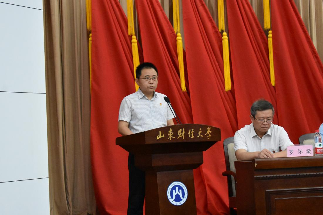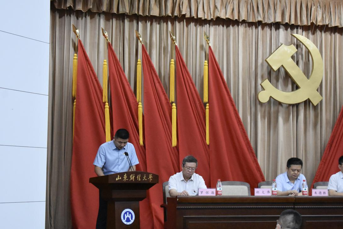 邵文涛代表本届党委作《工作报告》,回顾总结了过去四年来学院在政治理论、组织制度、党内监督、党建引领以及教学科研、人才培养等方面取得的显著成绩,客观分析了工作中存在的问题与不足,提出了未来几年学院在党的建设、科研教学、学科建设等方面的主要任务。号召全院师生不忘初心,牢记使命,用奋斗拥抱新时代,用实干开启新征程,为全面建成全国一流财经特色名校而努力奋斗。随后,郑大伟作《党费收缴、使用和管理情况的报告》,由党员大会审议通过。