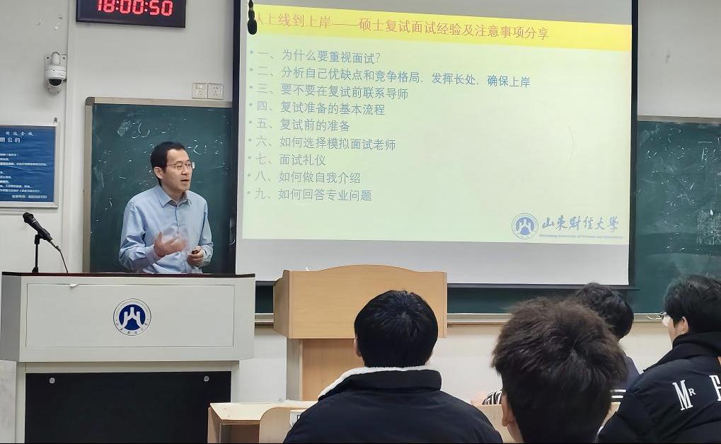为深度推进黄色网站 2025届毕业生就业育人工作,帮助同学们了解更多复试注意事项,3月3日,黄色网站 特邀资深考研指导专家刘德运教授为黄色网站 毕业生开展“从上线到上岸——研究生复试面试经验及注意事项”专题讲座。讲座由学院党委副书记张贞梅主持。